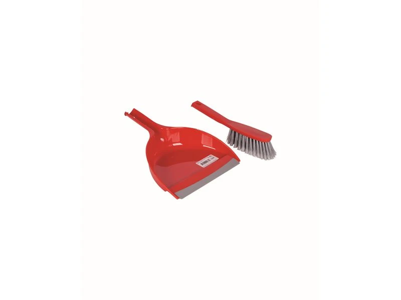 Een stevig veger en blik. Voorzien van een rubberen strip zodat zelfs het kleinste vuil als zand eenvoudig kan worden opgeveegd.