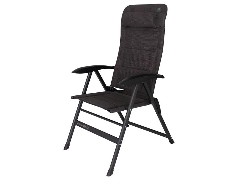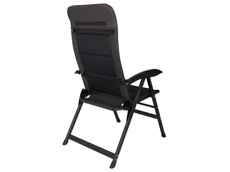Comfortabele campingstoel met extra brede zitting en hoge rugleuning met kussen. Het versterkte aluminium D-frame biedt een maximale belasting tot 140 kg.! De stof is gemaakt van gepolsterd air mesh materiaal en biedt een perfect zitcomfort. De rugleuning is in 6 verschillende standen te verstellen en heeft een verstelbare hoofdsteun. Voetsteun is optioneel verkrijgbaar.