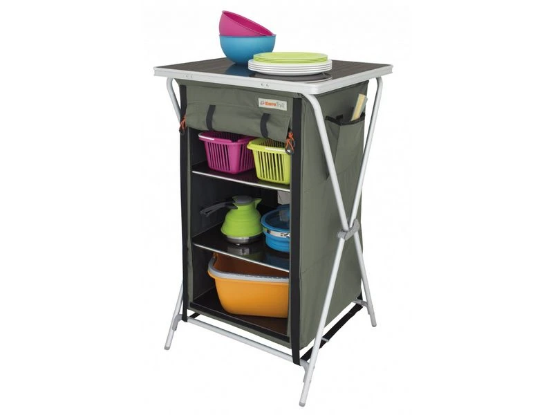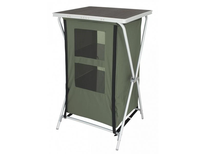 Populaire campingkast, snel op te zetten en met veel opberg plek.