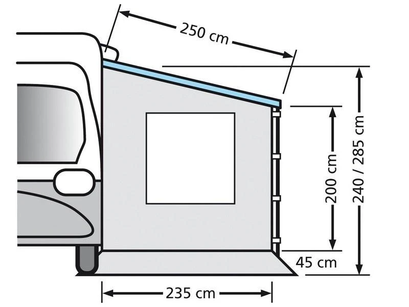 Universele zijwanden voor aan de caravan cassette luifels zoals Fiama of Omnistore.